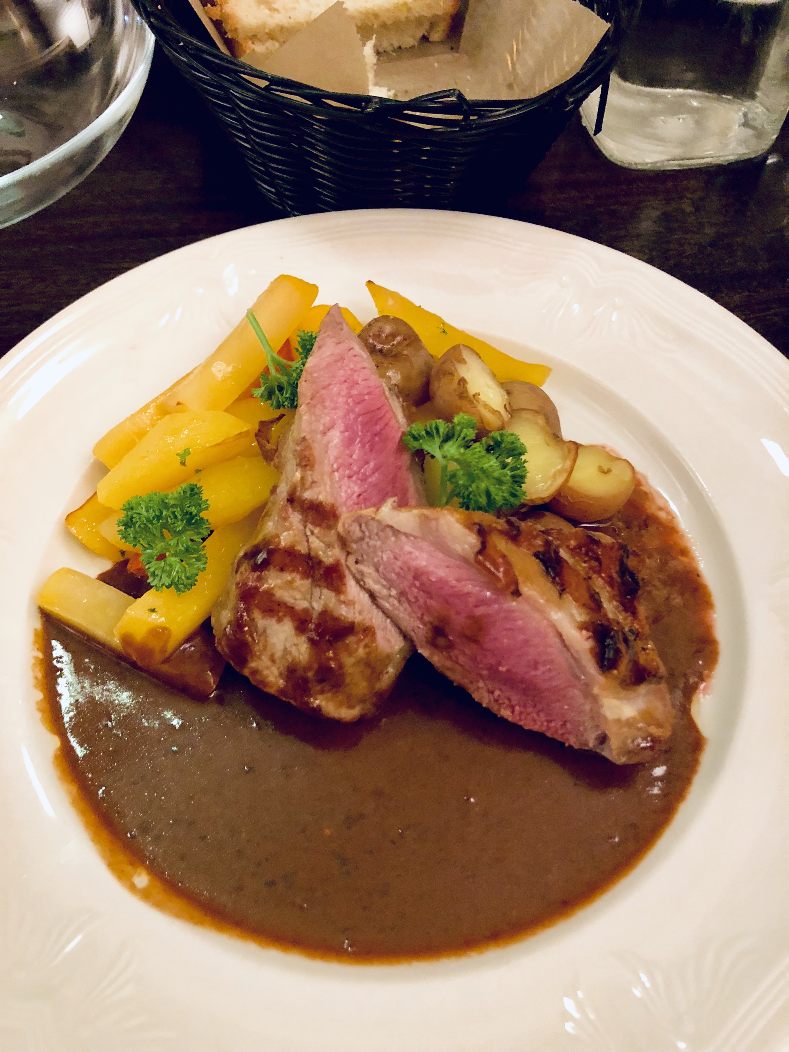 En hiver, le restaurant de l’hôtel est fermé, nous devons donc nous rendre en ville à une vingtaine de minutes afin de dîner.