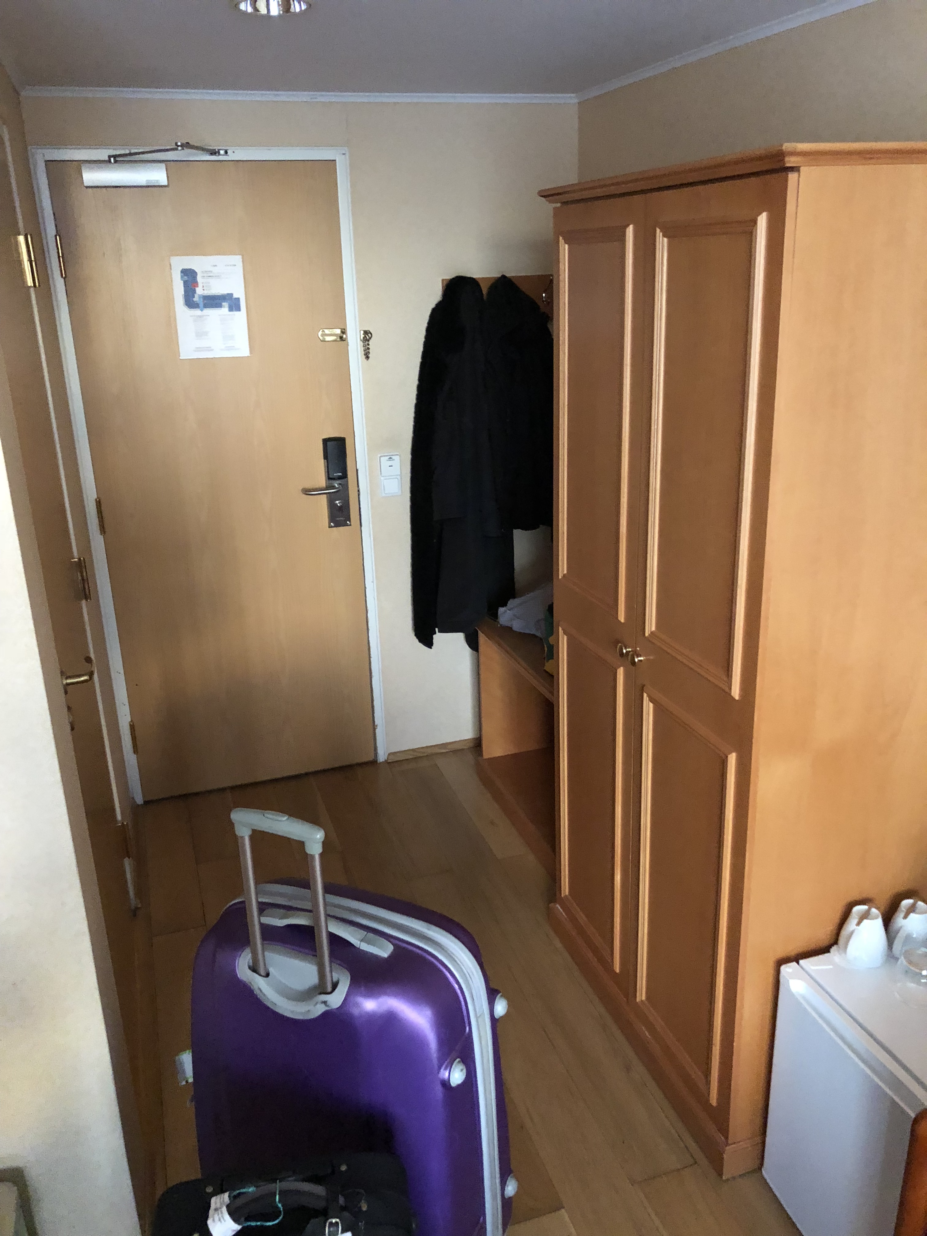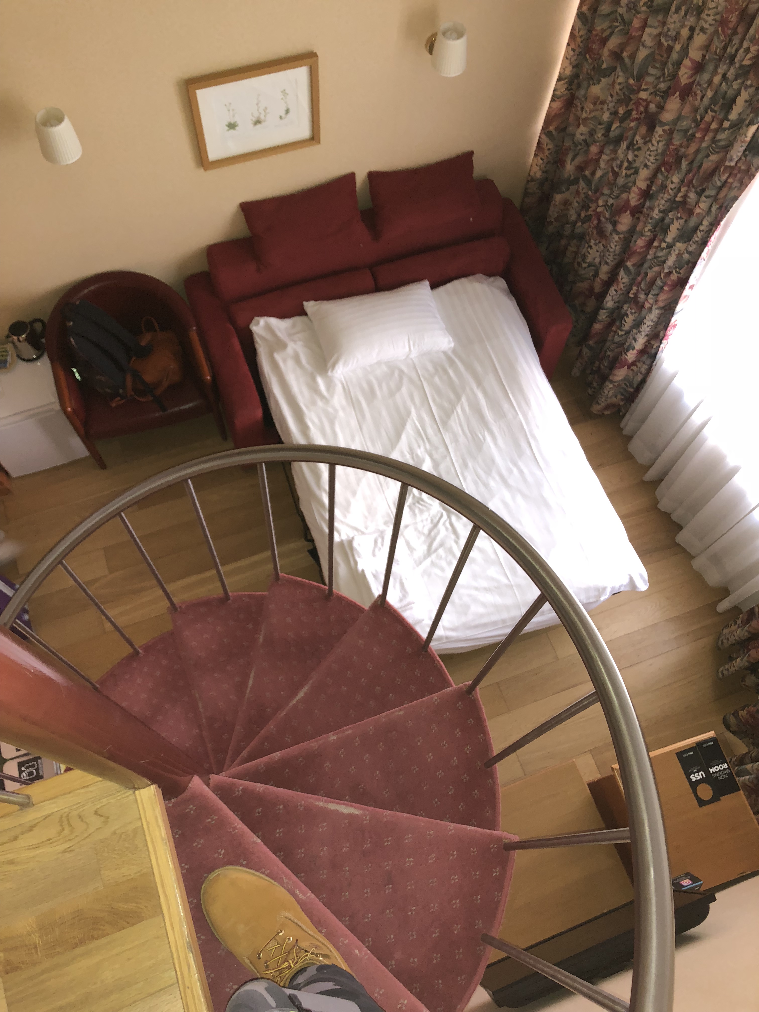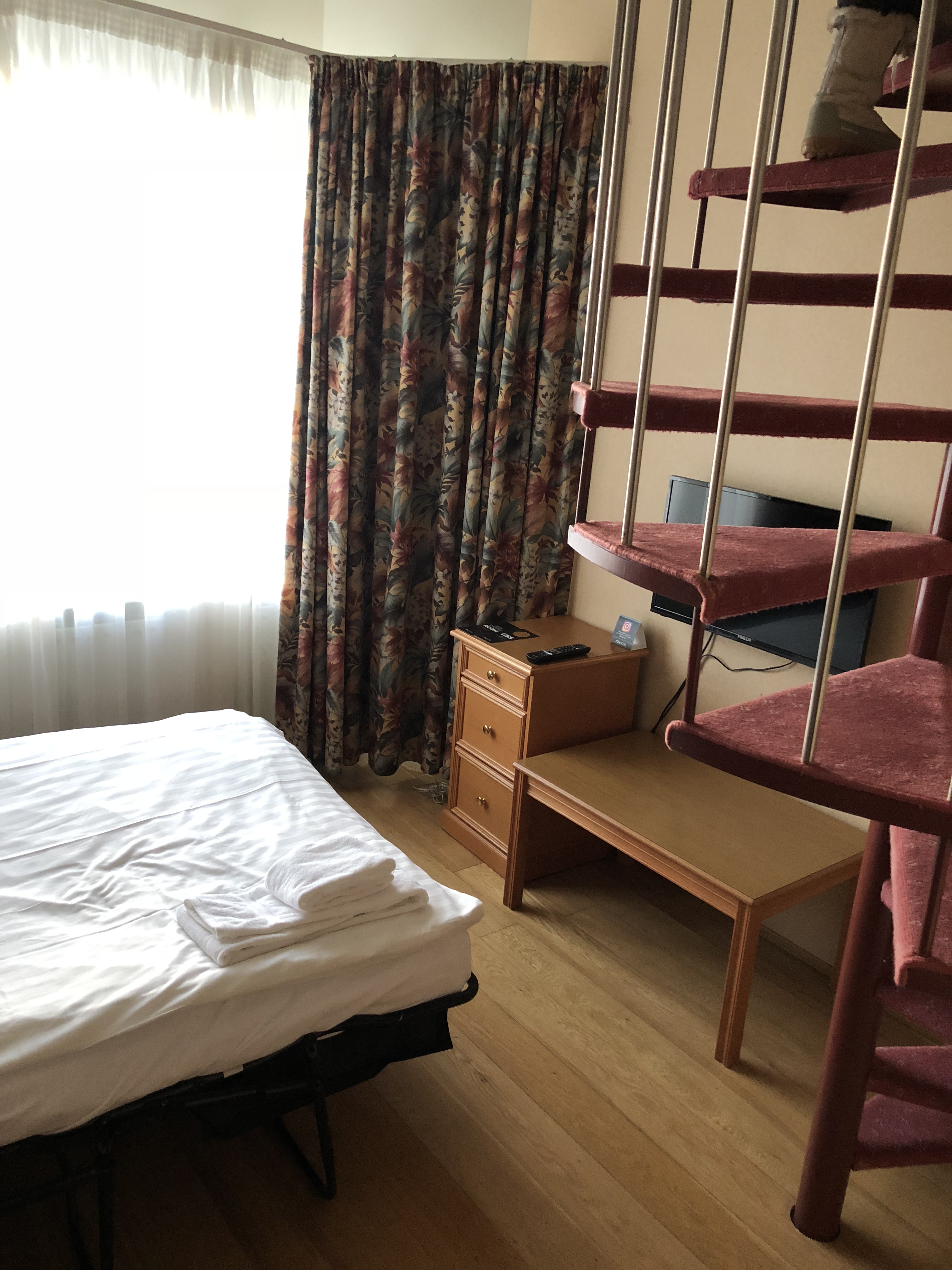 Arrivés à l’hôtel nous constatons une chambre un peu vieillotte, l’eau chaude provient directement d’une source d’eau chaude naturelle, salle de bain et wc privatif, nous n’avons pas vraiment adhéré au style de la chambre mais elle fût bien pour les quelques heures que nous avons passées.