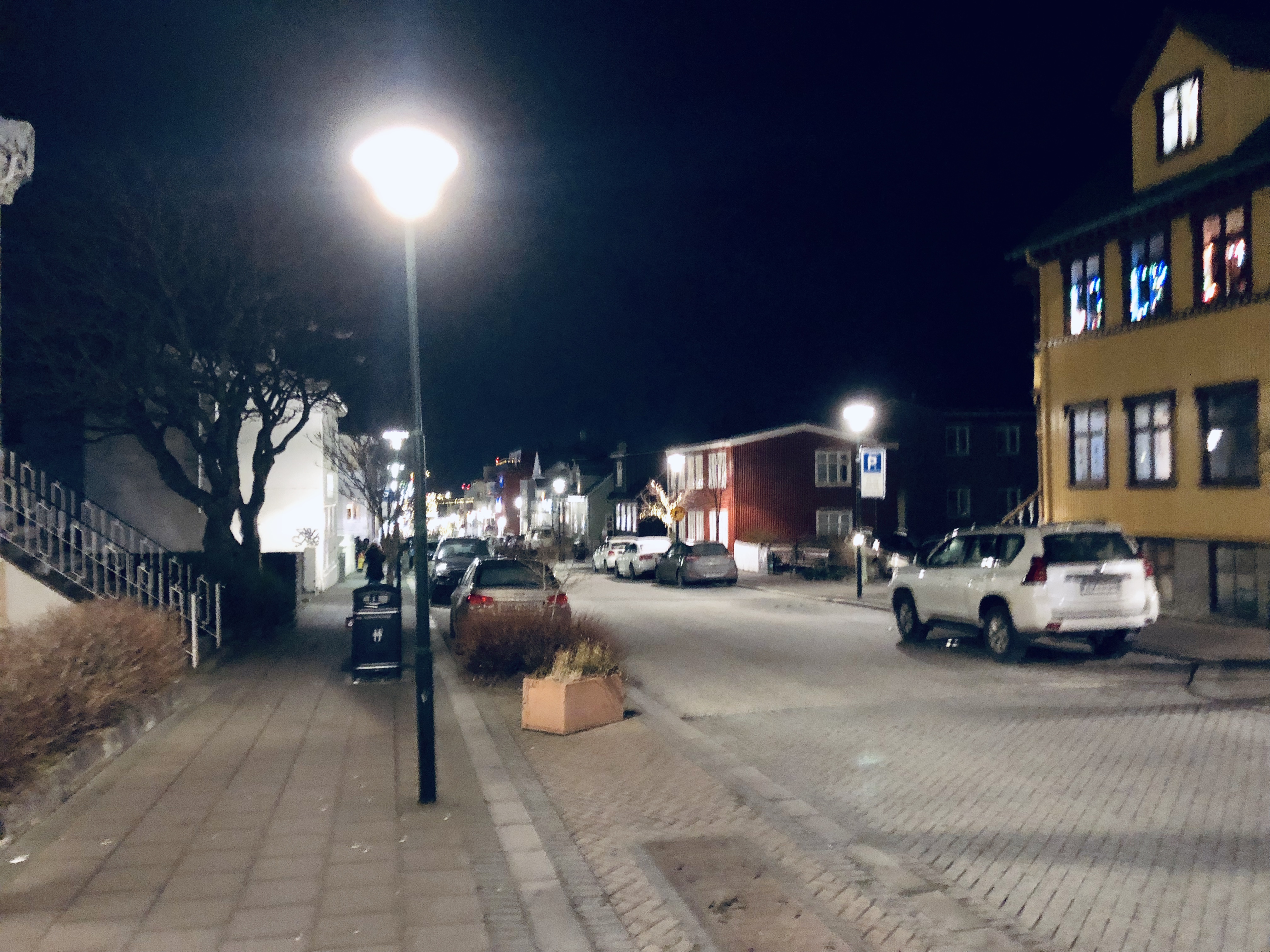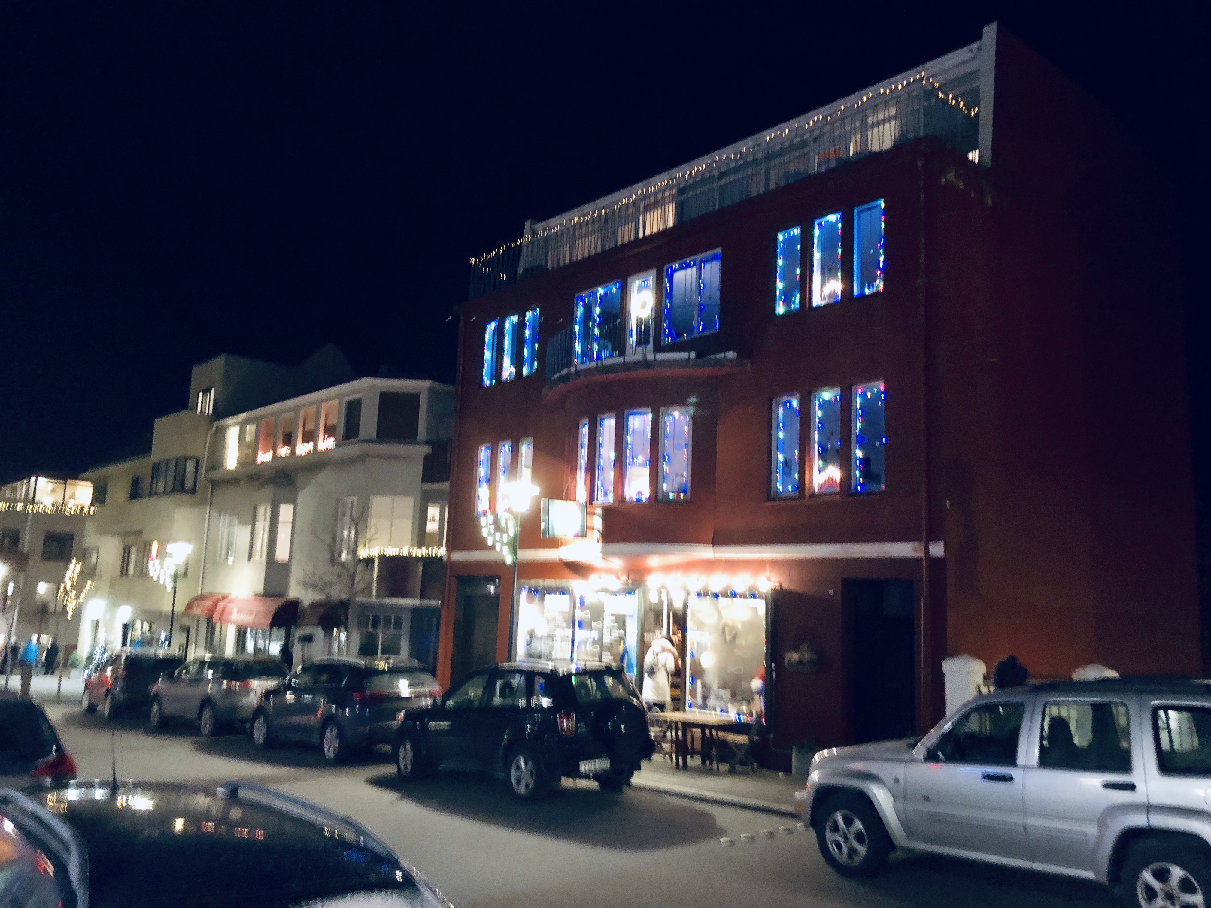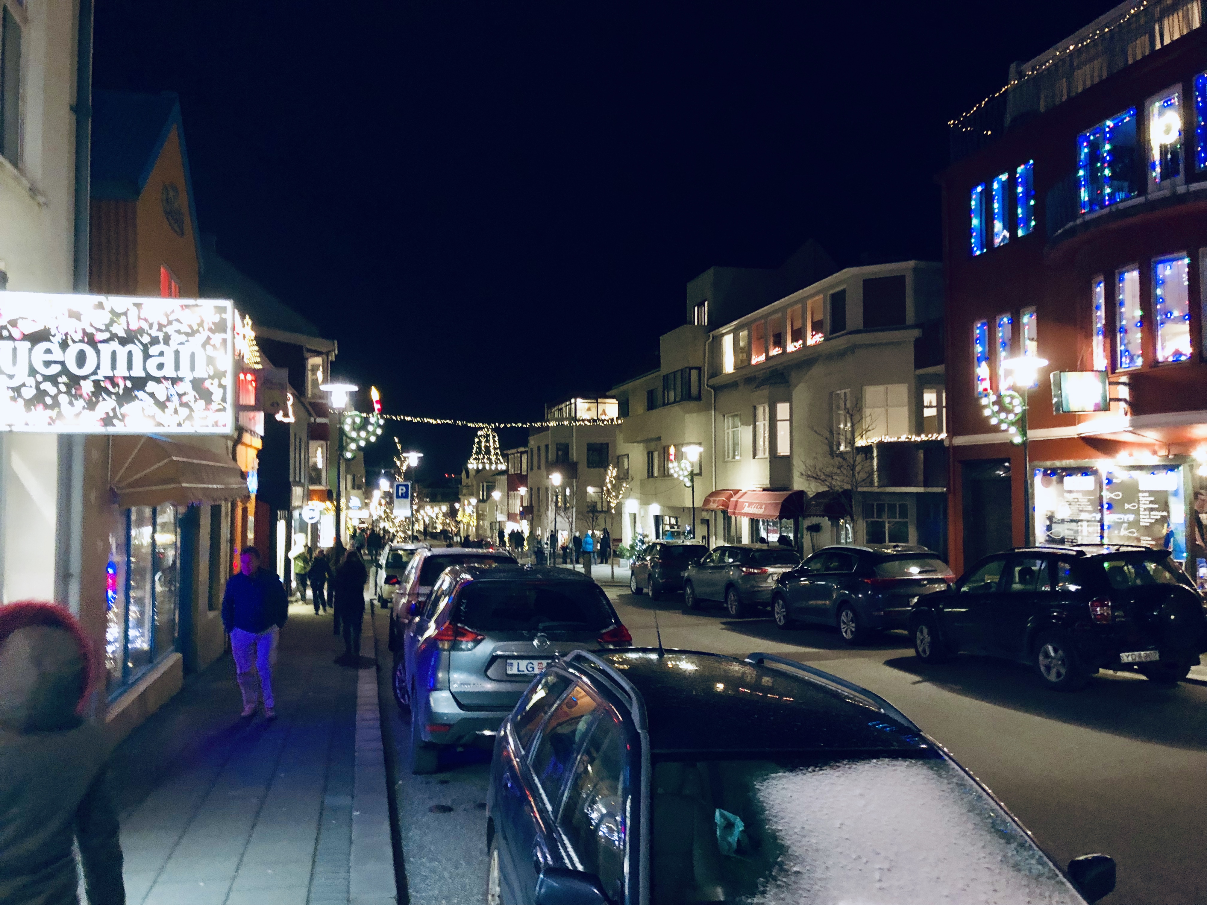 Par la suite, nous sommes partis marché dans la ville afin de la visiter un peu avant d’aller dîner, on est passé devant la grande église « Hallgrimskirkja » avant d’y revenir plus tard pour les feux artifices et nous avons pu tester le fameux hot-dog très célèbre en Islande dont tout le monde parle, il est vrai que son aspect n’a pas l’air très appétissant mais au goût il est excellent et cela vous réchauffe quand il fait -1° C dehors.