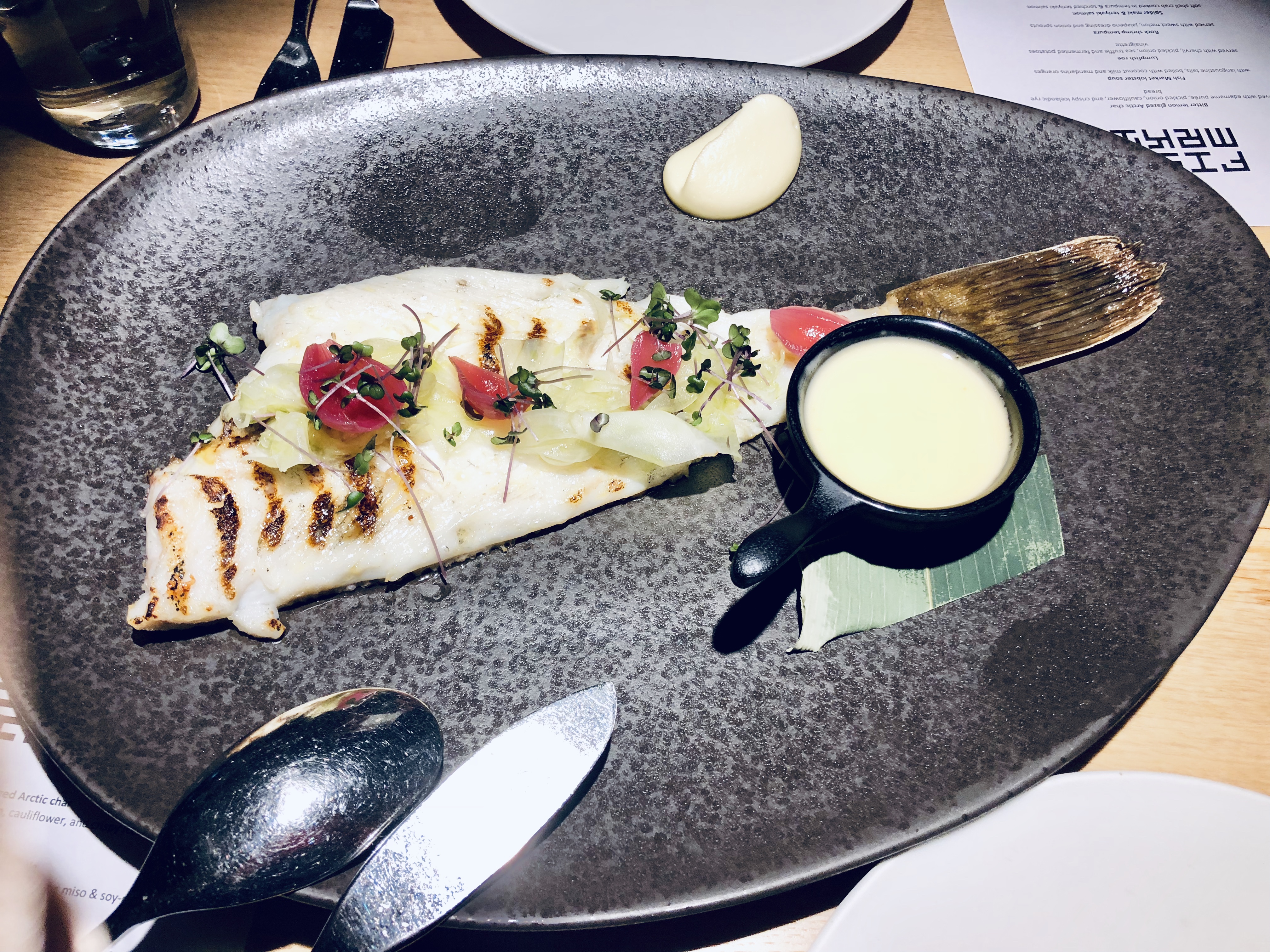 Nous nous sommes donc fais plaisir dans un restaurant gastronomique de la capitale « Fiskmarkadurinn ». Il s’agit d’une dégustation de 9 plats :