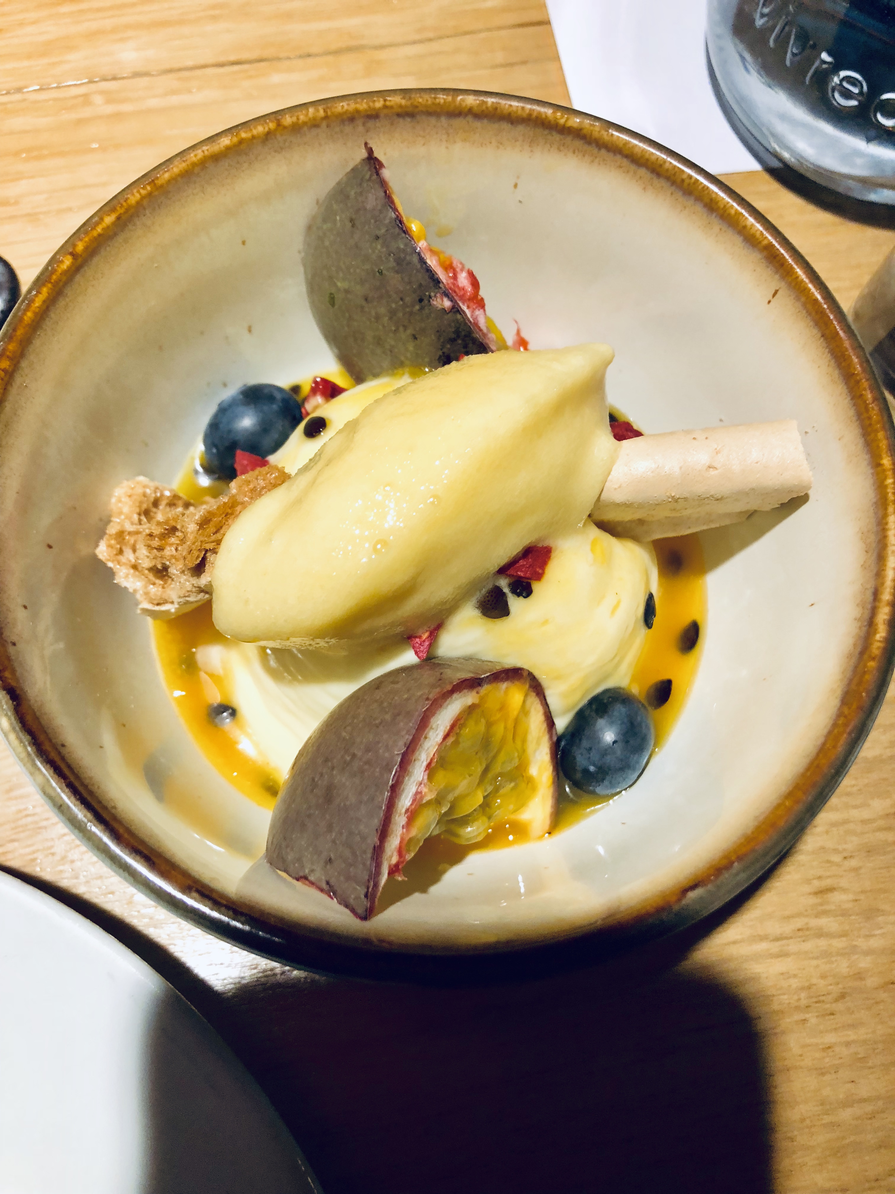 - plateau de dessert servi avec des fruits frais et des sorbet